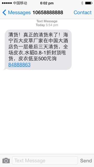 I was in Guangzhou China Monday and walking past a shopping mall on Tianhe Road I received this text message. Apparently, the retailer involved pays China Mobile a fee to send advertising via text to people nearby.