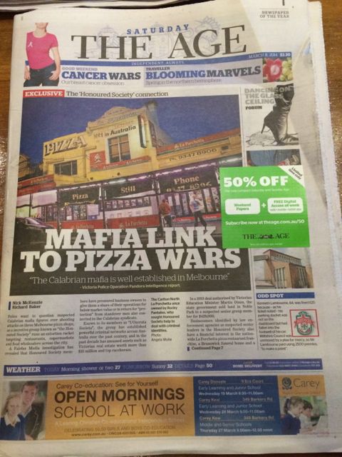 For the record, here’s the front page of The Saturday Age newspaper today. There is a house ad promoting subscriptions for 50% off covering editorial content. I’ll keep posting about this when I see it as a record for the future.
