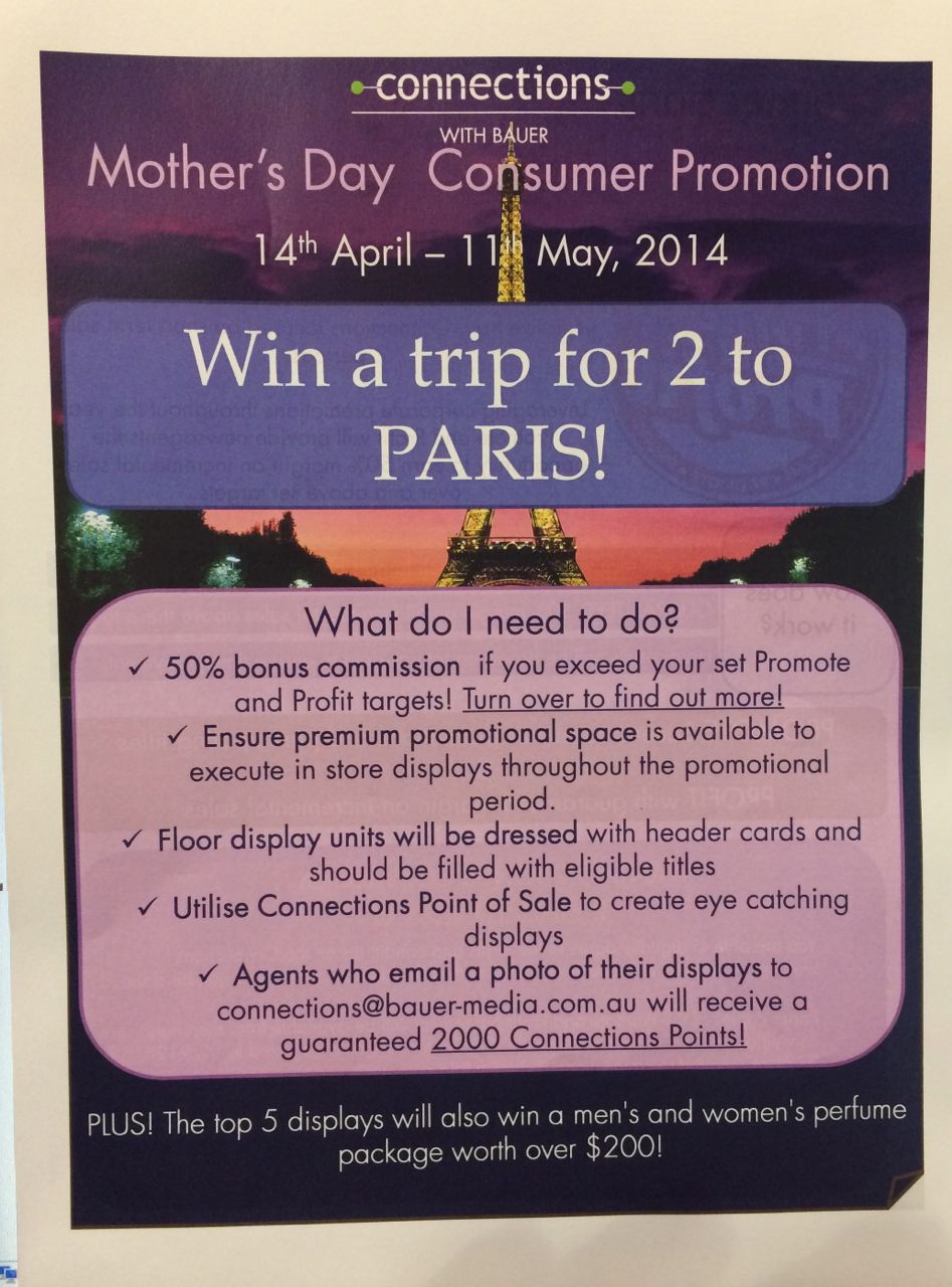 Bauer media yesterday sent a flyer and an agreement to newsagents for a Mother’s Day consumer promotion and an on-going Promote and Profit campaign.