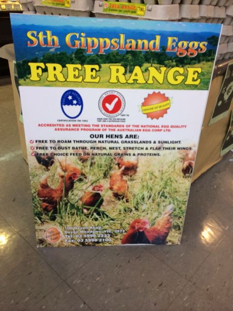 The photo shows how a Thomas Dux supermarket is promoting free range eggs. While not very local, the poster does show the eggs are from a farm in the state as well as giving confidence that they are genuinely free range.