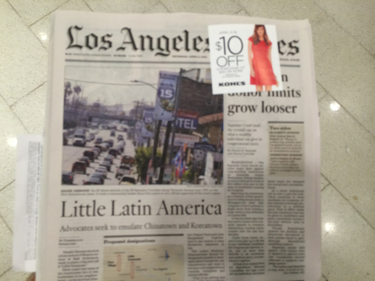 The stuck on ad for Kohl’s posted on the front page of the Los Angeles Times yesterday covered the masthead of the newspaper. I love newspapers and disheartened to see such a respected masthead covered up in this way. Sure publishers need the money but why not carve out page one space in a way that respects the brand?