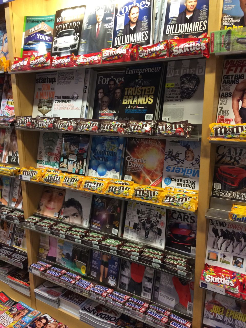 Check out the strip of candy in front of magazines that I saw at a CIBO outlet at New York’s La Guardia airport a couple of days ago.