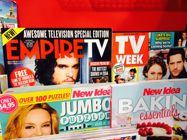 We have a pocket of Empire magazine with weekly magazines, next to TV Week because of the Game of Thrones cover. This is an excellent opportunity to drive impulse purchases of the title from shoppers who would not otherwise see it. Game of Thrones is huge – apparently.