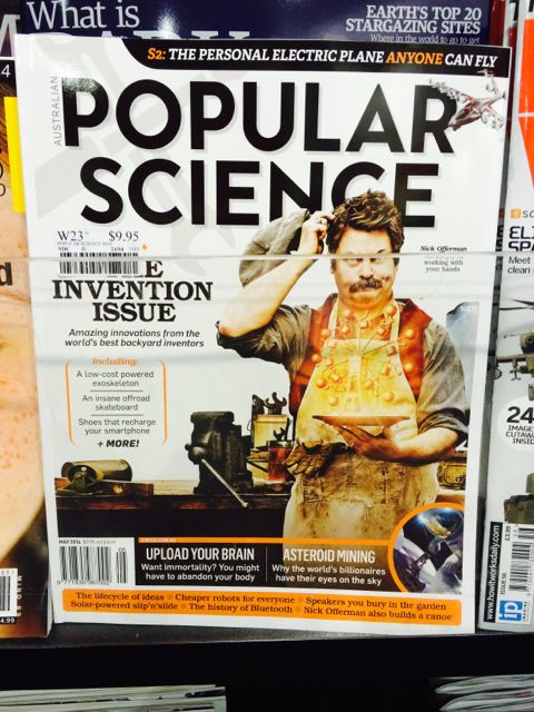 The Nick Offerman cover on the latest issue of Popular Science magazine is an excellent reason to give this title time in the spotlight. He’s a man of the moment in comedy and entertainment circles for a demographic connected with newsagencies.