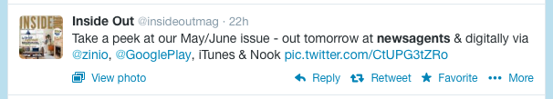 The publisher of Inside Out magazine has tweeted wide availability including at newsagents and on a range of digital platforms. While I understand their need to do this, they and other publishers need to understand the need of newsagents to manage magazine space, labour and time investment in this new world.