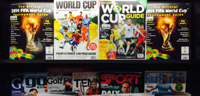 Promoting World Cup magazines ·May 14, 2014 ·Mark Fletcher ·0 Comments The World Cup is the main sports story and we’re chasing that opportunity with prime placement of World Cup titles. This attention will increase as more titles arrive. 1 likes magazines Leave a Reply Cancel replyYour email address will not be published. Required fields are marked *Name * Email * Website Enter Code * Captcha Comment * Δ Post navigation Next ArticlePrevious Article