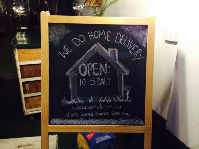Not only is the home delivery idea very cool, their promotion of it using a simple blackboard placed in the window is eye-catching.