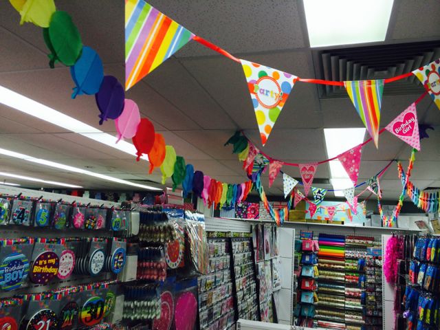 I was at newsagency and gift supplier Artwrap during the week – included in their extensive range products is a party goods section. In their showroom they have done what newsagents should do – they had product hanging just in that section, separating it from other sections and bringing a party feel to this part of the showroom.