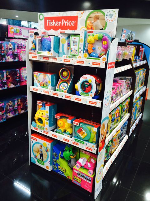 This stand has more impact than if the products were on the same fixture without the Fisher price branding on the aisle end and on the shelves themselves.