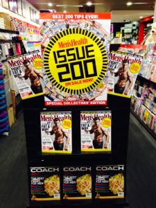 We are promoting the 200th edition of Men’s Health magazine with this aisle end display.