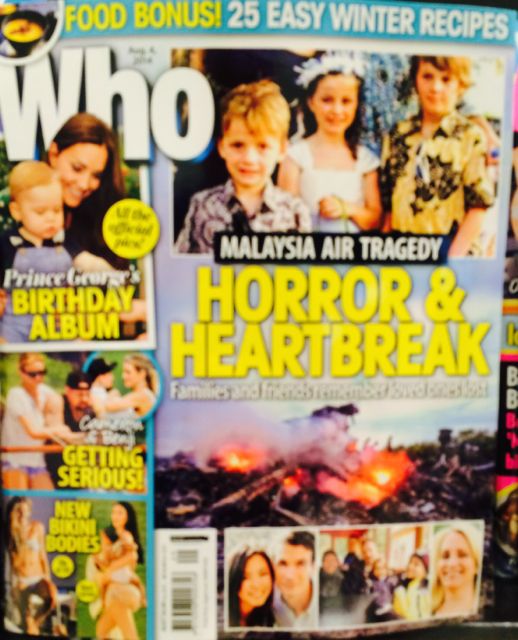 We have placed Who magazine on the counter to drive impulse purchases. The cover and the stories inside are respectful of the Malaysian Airlines tragedy – the full extent of which is still unfolding.