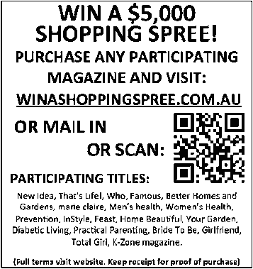 Newsagents promoting the Pacific Magazines Win a $5,000 Shopping Spree competition should include this coupon on their receipts. It’s an excellent use of receipt real-estate and will help drive competition entries and thereby build the marketing database for your newsagency. This coupon was created for retailers using the Tower newsagency software. A similar thing should work on any software.