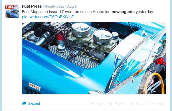The publisher of Fuel Magazine hit Twitter last week in support of newsagents as the go to retailers for the specialist automotive culture title. I thanked them for their support. They are keen to see more newsagents actively get behind the Aussie title – and Fuel Magazine is the real deal when it comes to being Australian. Check out this from their website: