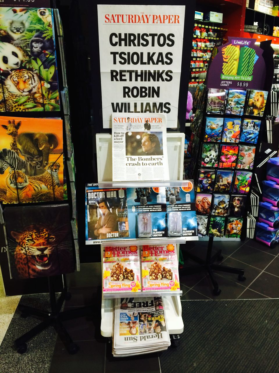 I setup the display to leverage interest in the Robin Williams story in The Saturday Paper. It’s a different take on a major story. I figured the poster is what would attract people. I then selected other products for the stand based on what a Saturday shopper could purchase.