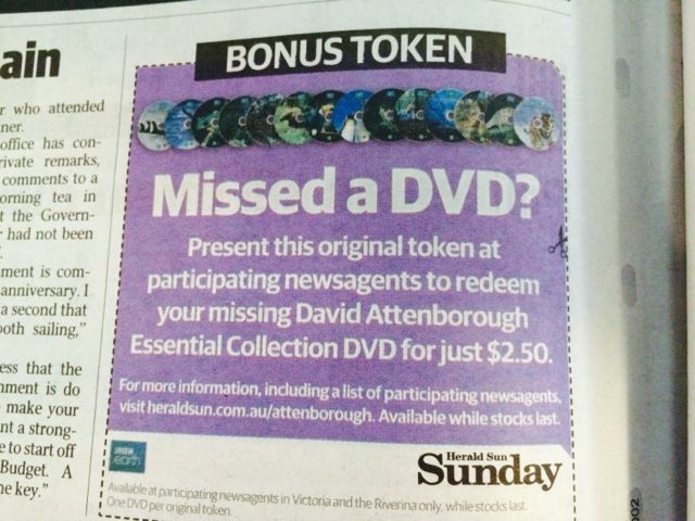 While I understand the purpose of the bonus DVD coupon in the Sunday Herald Sun yesterday, the coupons is only of value if there are stocks of the DVDs in circulation. I felt for the customer who said they have been to ten newsagencies that morning, four were closed, looking for the one DBD they had missed in the series. There’s got to be a better supply model. It starts with retail newsagents having absolute control over their supply through a direct relationship with the publisher.