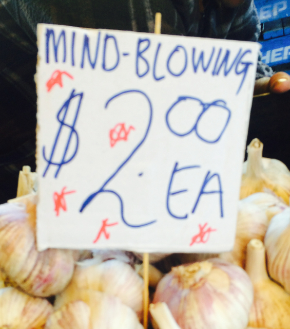 While I don’t know if the garlic I saw for sale at the market stall recently was mind-blowing, the claim on the sign, however, got me looking at the garlic.