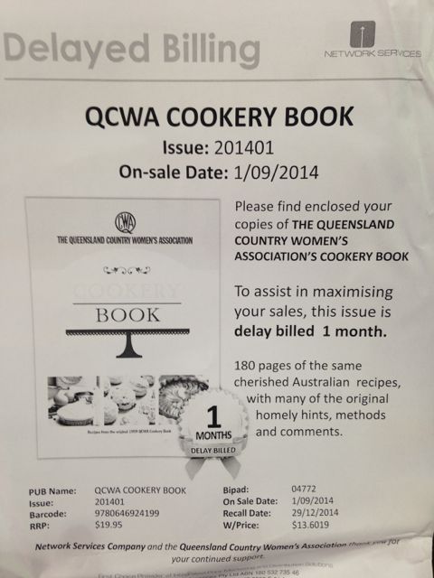 Like plenty of newsagents I am sure we received stock of The Queensland Country Women’s Association Cookery Book yesterday.