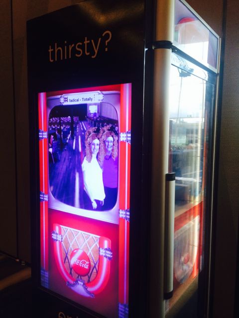 I got to see the new in-store interactive Coke machine in action on the Gold Coast yesterday. It’s a heap of fun. You stand in front of the machine and it puts a wig over your image. It selects the wig based on its own assessment of how you look. In the morning it thought I needed to wear a baseball cap and look like a rapper and in the afternoon it was a mullet. Hmm…