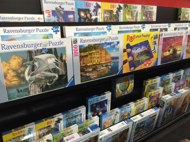 We needed space for Halloween, Calendars and the start of Christmas stock in our 135sq m floorspace newsagency and so had to find a temporary home for our popular Jigsaw range. The placement revealed another use for magazine fixtures.