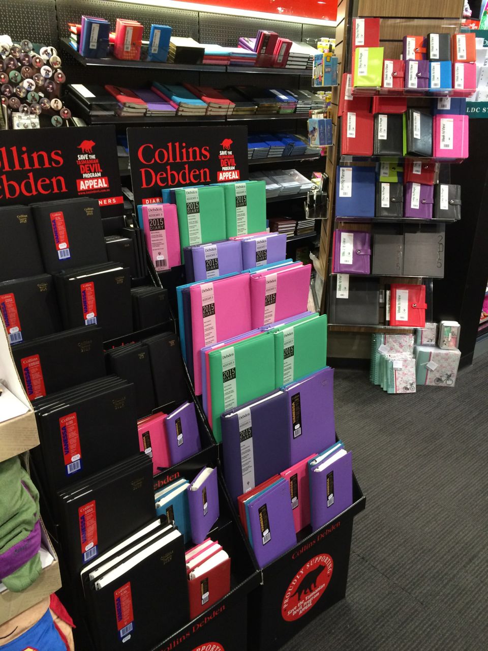 If you look carefully at the photo you can see our layering approach in action for 2014 diaries. The diaries are placed in three locations: two floor display units, on a column and on the wall.