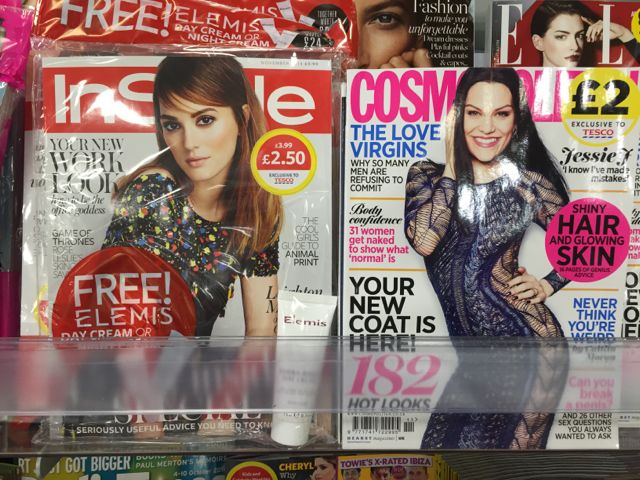In the UK over the last couple of days I have seen several examples of exclusive pricing of magazines for supermarkets. In the photo are two examples: InStyle and Cosmopolitan – the mini version in each case. The publishers have printed on the cover EXCLUSIVE TO TESCO. This is disappointing to see as it’s a hard position from which to retreat. It also does not make sense for publishers have favourite retail channels.