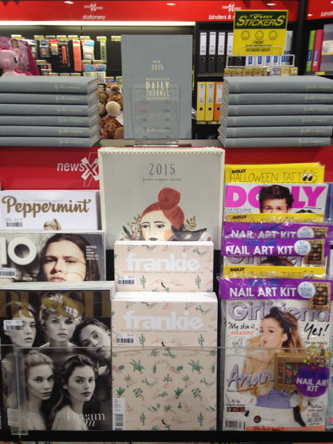 We have the latest issue of Frankie plus the Frankie diary and Frankie calendar all placed wityh each other in the middle of our women’s magazine aisle.
