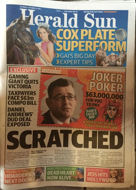 Politicians on all sides let newsagents down. They left us to defend ourselves against extraordinary bullying by Tatts that cost us millions in capital and much more in lost sales. Newsagents lost while many parties, including News, stood by and watched as this happened.