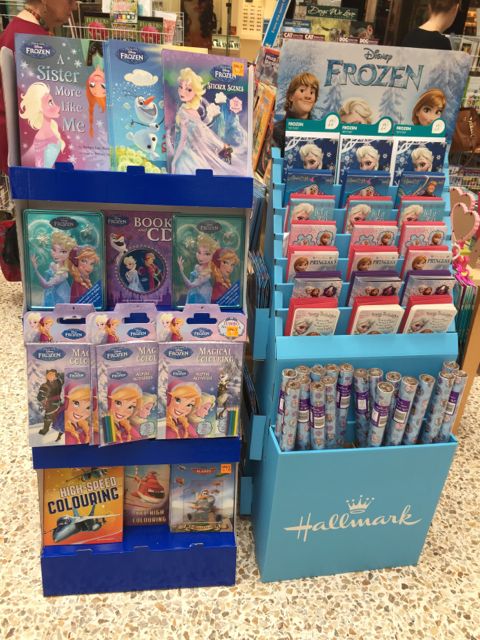 I saw a good example of the power of the Disney Frozen brand Thursday when visiting a newsagency. The two stands of Frozen product in the photo were a magnet for kids and those buying for kids.