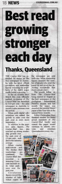 Check out the report in The Courier Mail on Saturday saying it was the only newspaper to report an increase in the latest audit.