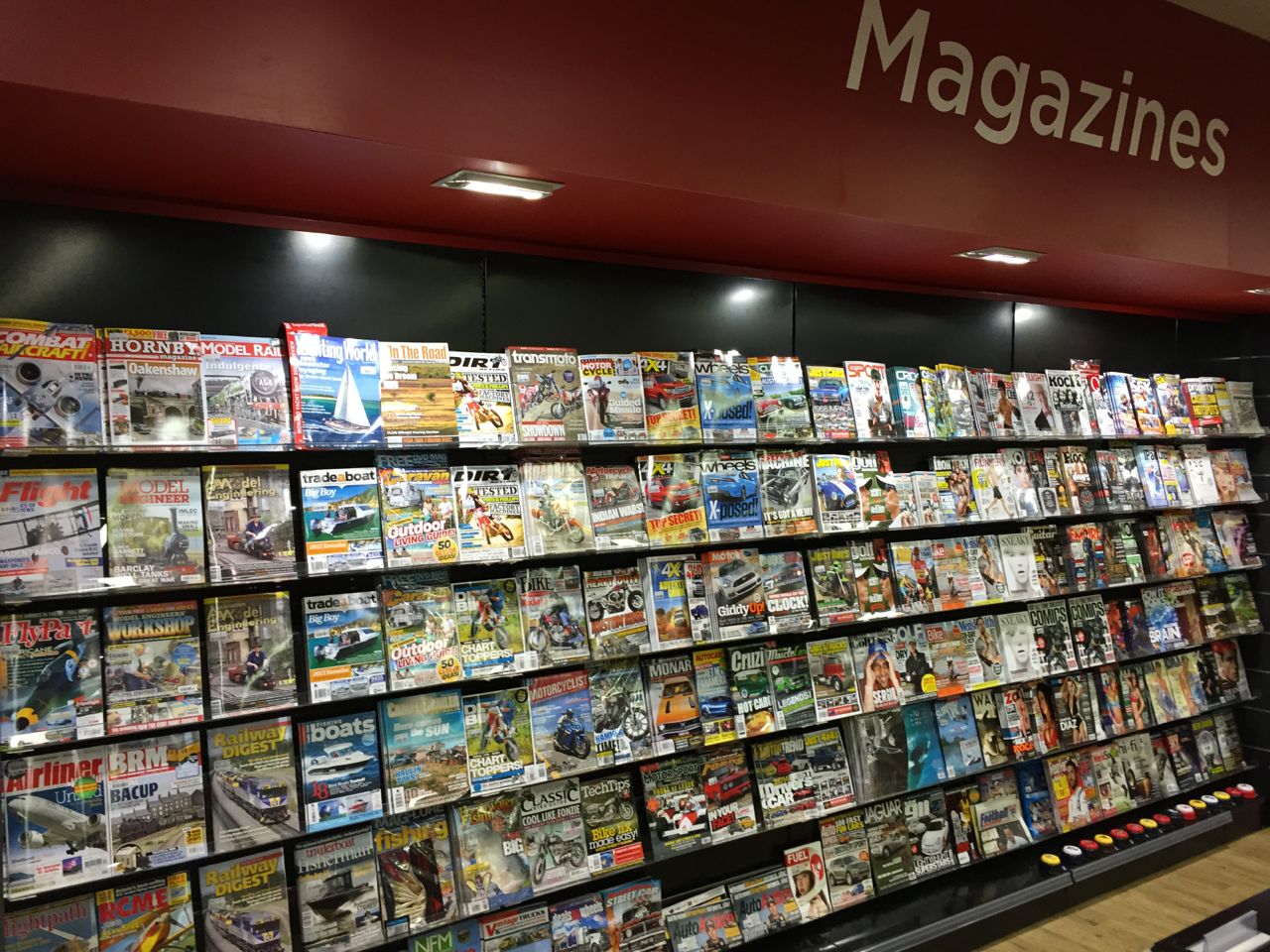 I relayed the magazines at one of my newsagencies today – for the first time in six months. The photo shows the new back wall after the relay. This wall targets our male shoppers – it is on the back wall of the shop, to lure them down to the back and past cards and gifts.