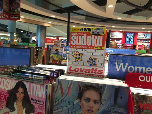 Check out how Newslink in Brisbane airport is promoting crossword titles above magazine pockets. They had these located throughout the magazine department – promoting crossword titles to just about every magazine shopper. It’s an interesting approach – something newsagents could try.