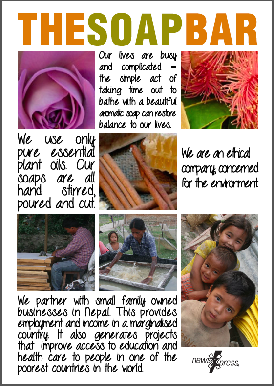 The soap offer supports a family in Nepal where the packaging is made from scratch. Sales of the products helps the family have a life they otherwise might not have had.