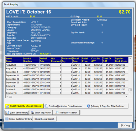 Check out this screen shot from a newsagent showing supply of LOVE IT today. Zero sales for eight issues and the allocations experts at Gotch increase supply.