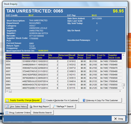 Yep, the same newsagency as the last two, this time it’s TAN UNRESTRICTED. With no sales achieved from issue 54 through to issue 64, the Gotch magazine allocations experts have decided the newsagent needs to go from five copies to eight copies. This would be laughable if it was not so harmful to the business.