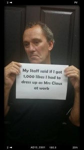 Our shop page has had an extra 65 “locals” follow us which is probably the most important of any of the above. We need local support to fully utilise Face Book. Whilst we think it was super impressive to have over 30,000 see the post it is more important to have that local following so we can harness that.The whole thing started as tongue in cheek but very very quickly became far more than that. The amount of comments from shoppers who said that they had seen me on FaceBook was mind blowing, especially as they had come in to see me dressed as Mrs Claus. We had fun with it in the shop and offered specials to those that had seen it on FB. The whole week really has been an eye opener on the power of social media…..and as you said…”it`s free”….it only cost me what little dignity I had left…LOL.