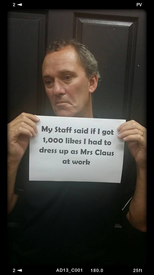 This is a Facebook post from newsXpress Eli Waters Tuesday this week putting out a challenge – seeking likes to get Allan Wickham, one of the owners, into a Mrs Claus outfit. The post generates 1,475 likes with more than 20,000 seeing the post thanks to viral sharing.
