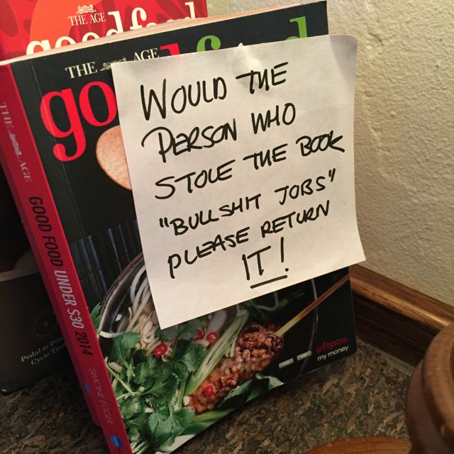I love this sign I saw in my local coffee shop today. It reminded me that petty theft is everywhere, not just in the newsagency where I see it regularly as people help themselves to items. I like the direct communication on the sign by the frustrated cafe owner.
