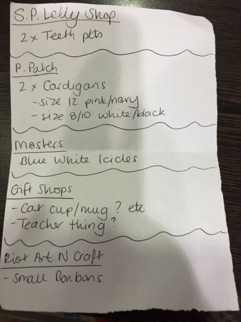 I found this shopping list note on the shop floor the other day and loved the opportunity to see what one shopper was looking for and where they are looking.