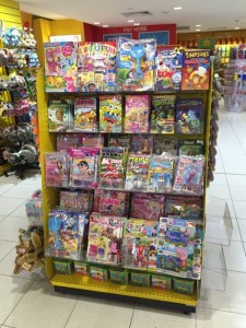 This photo shows the aisle-end display of kids magazines at WH Smith’s Zoodle store in Melbourne. It’s terrific. Anyone shopping for kids titles would feel that they could find what they are looking for from the range featured in the display.