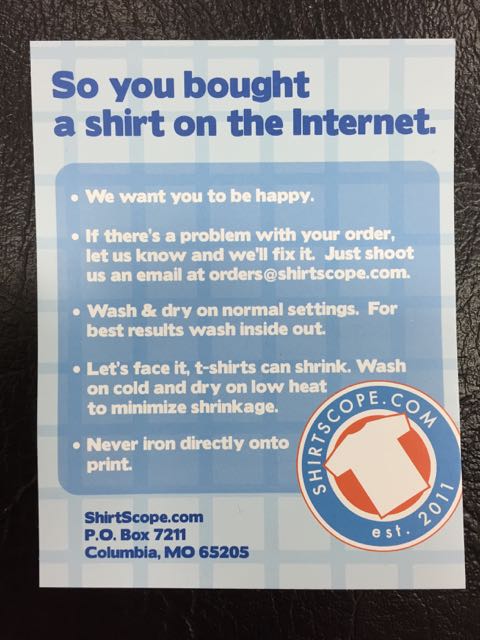 I bet they thought about this long and hard at SHIRTSCOPE.COM – about how to provide an experience to the online shopper which is better than they would experience from a high street retailer. It shows in their execution from the website to shipping to how the product was packed to the customer care from this note.