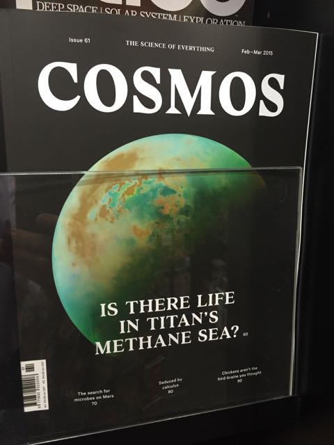 I love the look of the latest issue of Cosmos magazine. It stands out among the sea of colour of the magazine department. we have the whole front cover on display – to leverage the terrific cover.