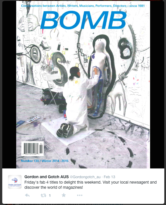 Magazine Distributor used Twitter Friday to promote newsagents again and shared images of four magazines. While I love the support from Gotch for newsagents, I’d prefer them to choose titles more newsagents are more likely to regularly carry. For example, I’ve never heard of Bomb magazine. I looks to be a niche title for a specialist market.