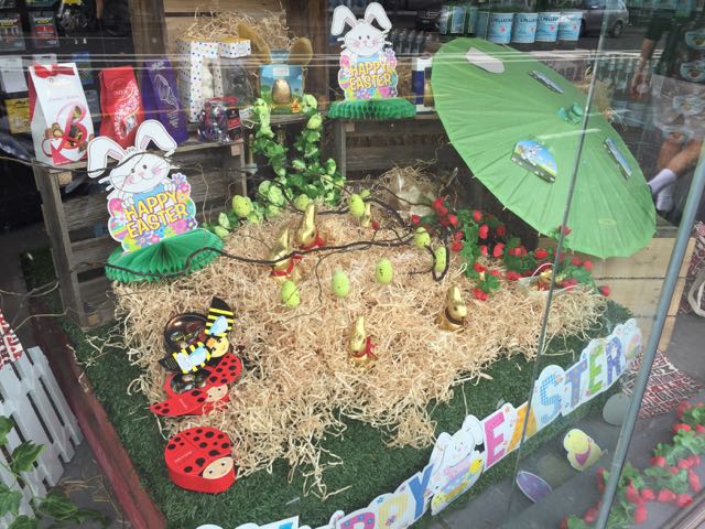 This photo shows an Easter window display in a Thomas Dux outlet. It works well for this kid-focussed season as it plays on the colouring competition, treasure hunt and other themes. The photo serves as inspiration for newsagents considering their displays.