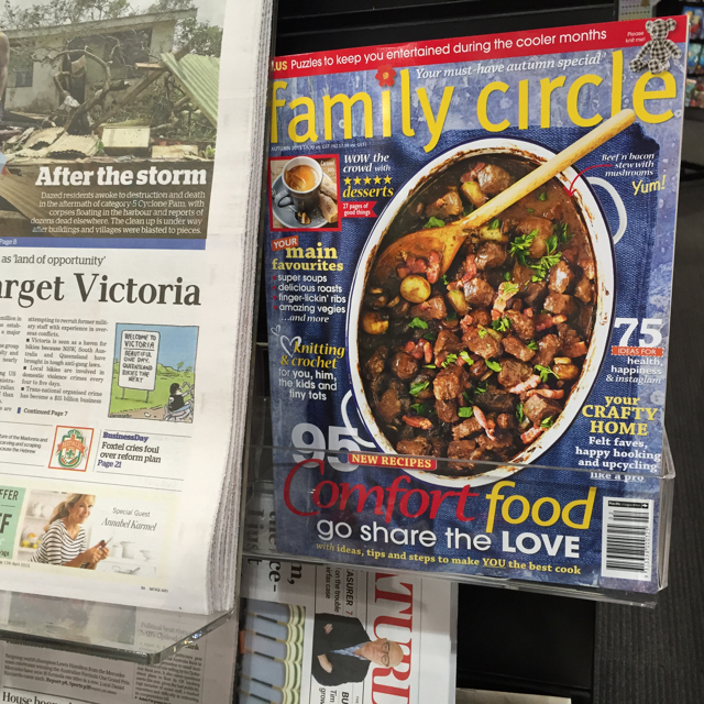 We are promoting the latest issue of Family Circle magazine with newspapers as well as in food. It’s already working well from this newspaper location. We will leave it here for up to two weeks as it performs. We created this single pocket with an opportunity of an acrylic pocket next to The Age. Free space like this next to papers works a treat.