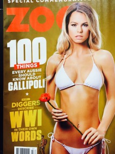 Zoo ANZAC day failure ·April 25, 2015 ·Mark Fletcher ·0 Comments Had some comments today about the poor taste of the cover of Zoo magazine. I suspect the couple who complained sought the magazine out specifically to make the complaint. I agreed with them – they were happy with that. 2 likes magazines Leave a Reply Cancel replyYour email address will not be published. Required fields are marked *Name * Email * Website Enter Code * Captcha Comment * Δ Post navigation Next ArticlePrevious Article