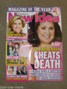 Check out this seller on eBay offering old magazine posters as supplied to newsagents from years ago. This New Idea poster from 2007 is offered for $9.00.