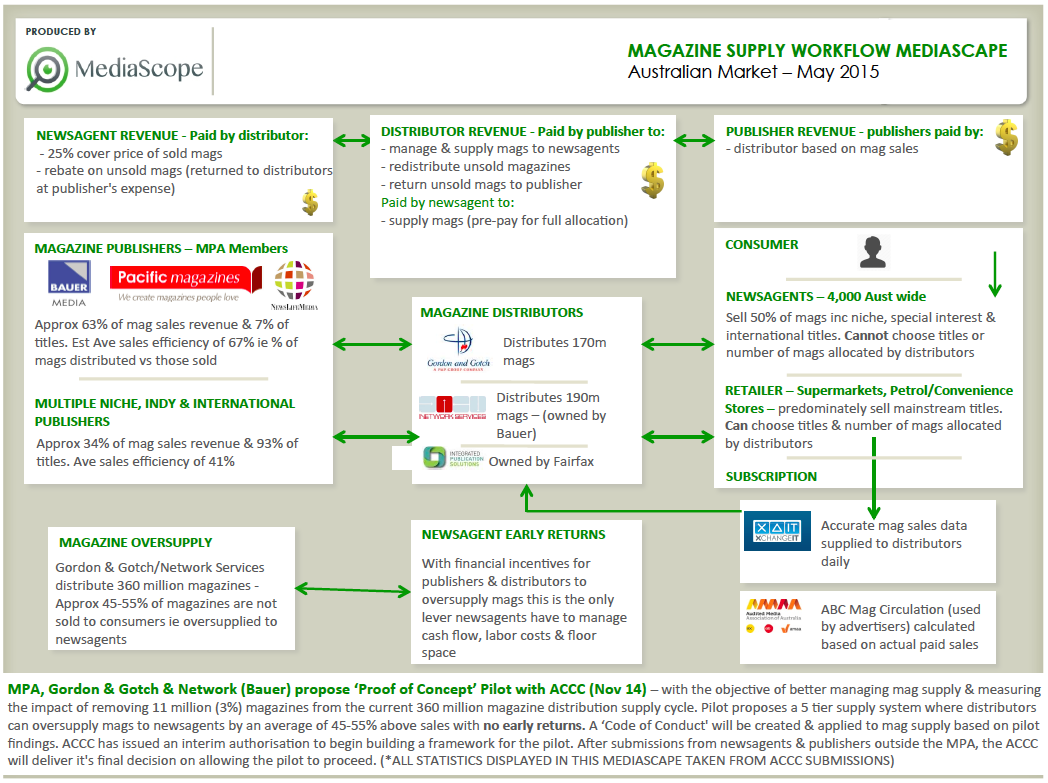 I like this infographic from MediaScope showing the position of newsagents in the magazine landscape and our uncompetitiveness due to out of date supply rules. It makes a complex issue understandable. It makes the case for fairness for us so we can compete.