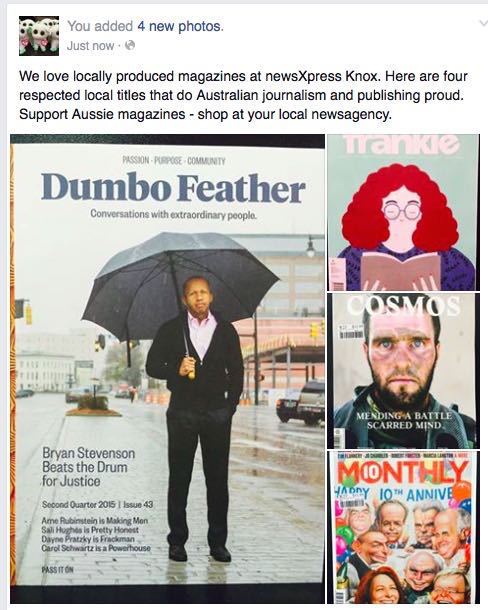 We are promoting four Australian magazines and newsagencies as the places to purchase these and other magazines on my newsagency Facebook page. I have also paid to boost the post – to reach more people.