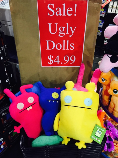 We bought a pack of these ugly dolls at a terrific discount and instead of selling them at suggested retail for a bonus margin, we decided to price them for quick sale and to place them on the main path to the counter. reflecting the price and the opportunity we did nothing special for the display or sign. Shoppers pick them up and talk about them, the label Ugly Dolls does the trick.