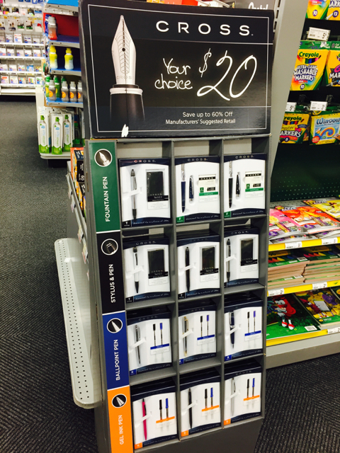 I like this floor display unit of four different gift packaged pens I saw in a regional Staples store in the US last week.
